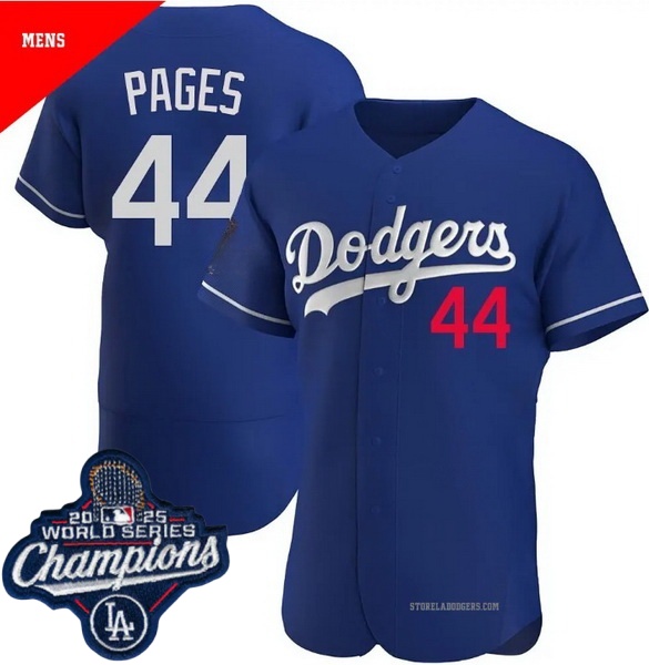Home>MLB>2025 World Series>Los Angeles Dodgers Champions>Men Los Angeles Dodgers 44 Andy Pages Cool Base 2025 World Champions Stitched Baseball Jersey Blue