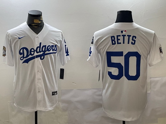 - Men Los Angeles Dodgers 50 Mookie Betts White Blue Split Cool Base Stitched Baseball Jerseys