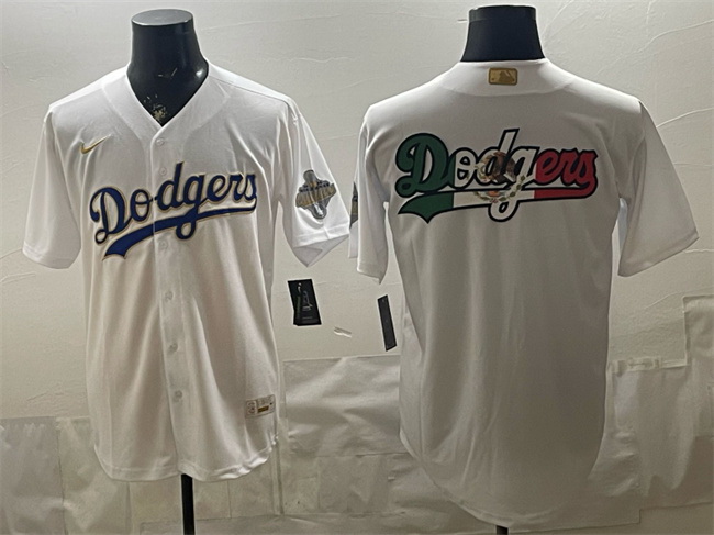 - Men Los Angeles Dodgers Team Big Logo White Blue Split Cool Base Stitched Baseball Jersey