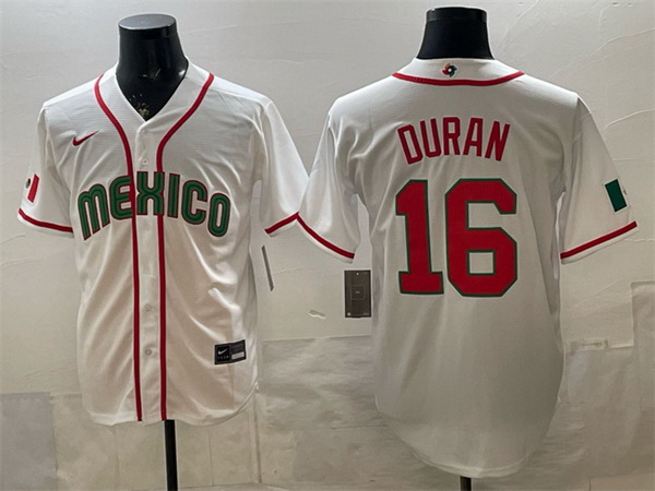 Men Mexico Baseball 16 Jarren Duran White 2026 World Baseball Classic Home Stadium Stitched Jersey