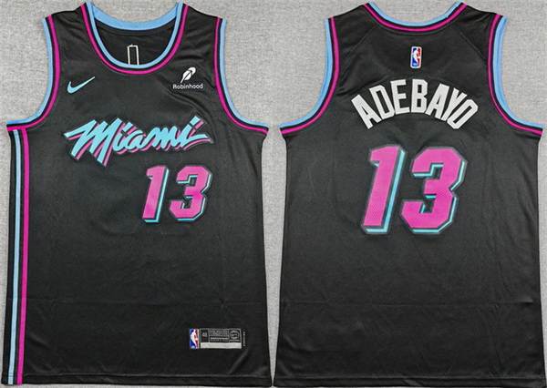 - Mens Nike Miami Heat 13 Edrice Adebayo Authentic Black Road NBA Jersey Icon Edition