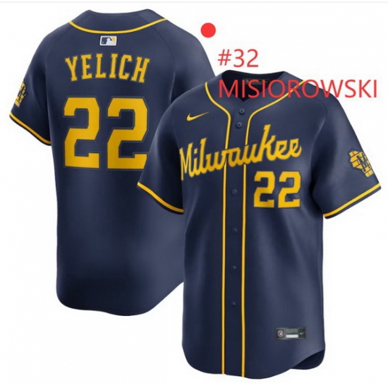 - Men Milwaukee Brewers 22 Christian Yelich White Alternate Limited Stitched Jersey