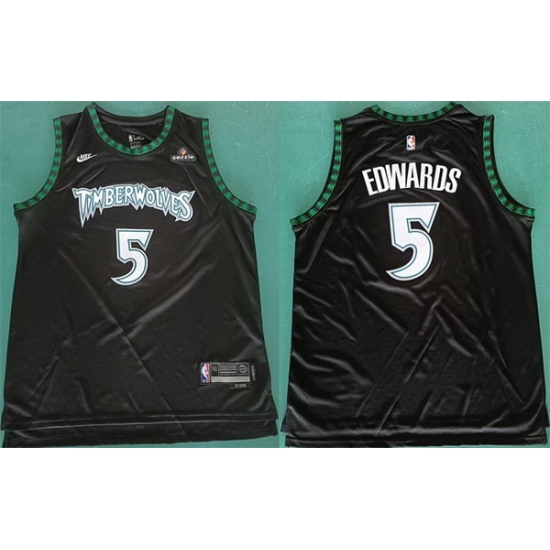 - Men Minnesota Timberwolves #5 Anthony Edwards Black Green City Edition Stitched NBA Jersey
