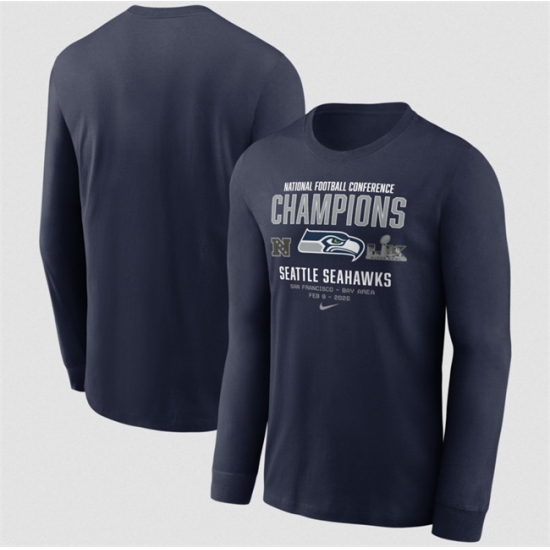 - Men Seattle Seahawks Navy 2025 NFC Champions Glory Shield Hoodie