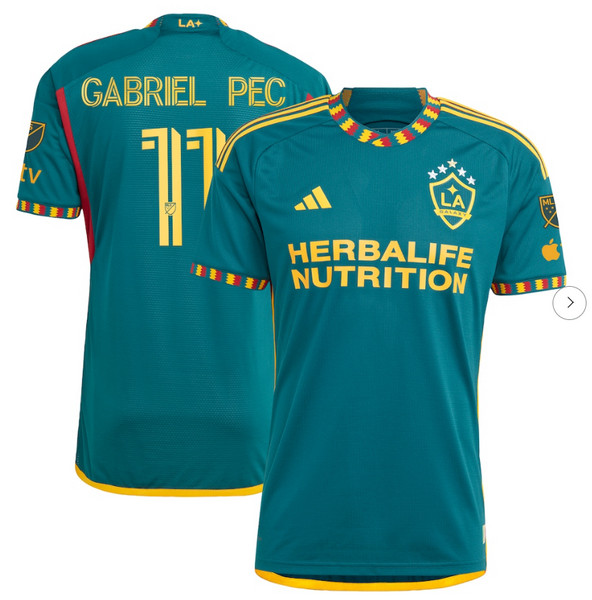 - Mens LA Galaxy Gabriel Pec adidas Green 2024 LA Kit Authentic Player Jersey