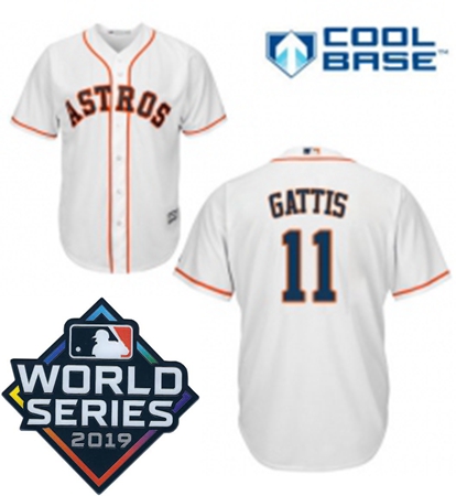 Mens Majestic Houston Astros 11 Evan Gattis Replica White Home Cool Base Sitched 2019 World Series Patch Jersey