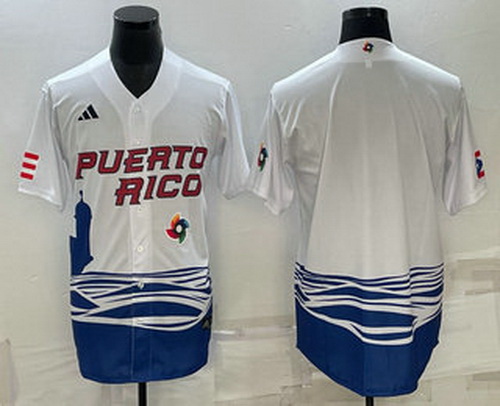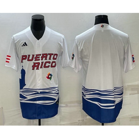 - Men's Puerto Rico Baseball Blank White 2023 World Baseball Classic Stitched Jerseys