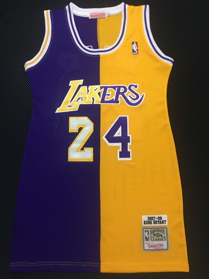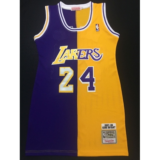 - Women Los Angeles Lakers 24 Kobe Bryant Dress Stitched Jersey Yellow Purple Split